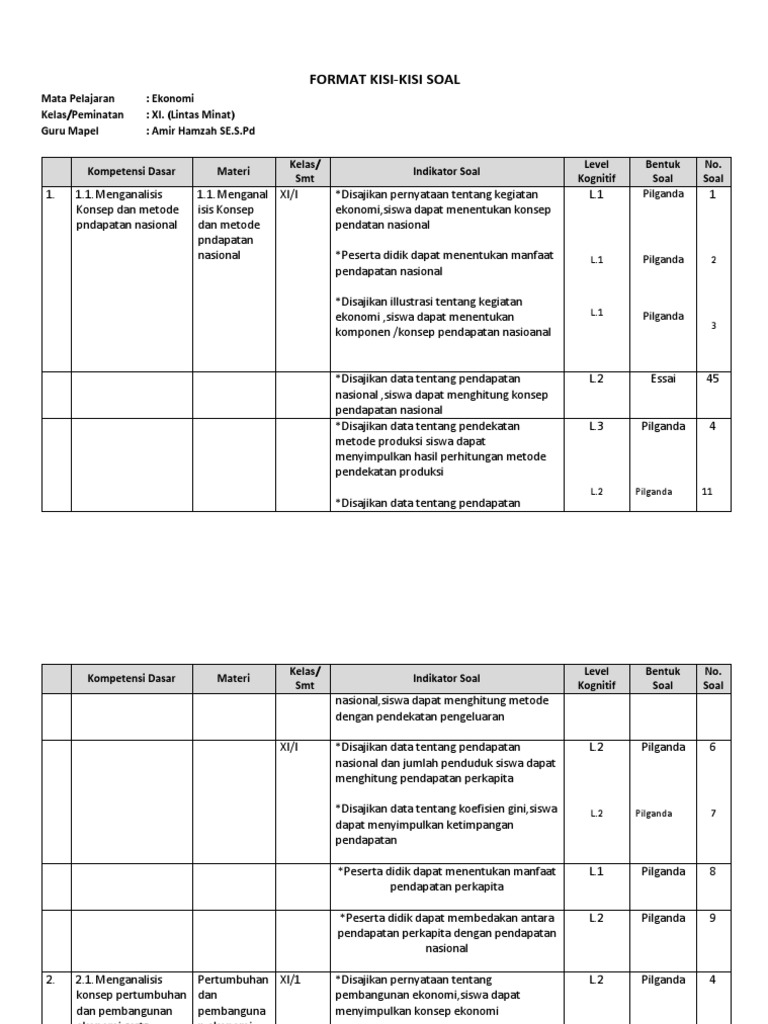 Format Kisi-Kisi Soal Ekonomi Dalam Tabel Kelas X - Kisi Kisi Soal Ujian Sekolah Untuk Sd Mi Tahun Pelajaran 2020 2021 / 2013 contoh soal dan jawaban obligasi disusun oleh.